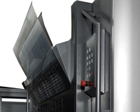 全自動同時換版裝置只需75秒即可完成更換印版,大大縮短了印刷準備時間。從版胴相位對準到舊版取出及新版的更換完成所有換版模組同時自動執行。提高需要頻繁更換印版的小量印刷效率。