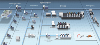 相容CIP4 JDF可建構數位化作業流程。將印刷機和經營管理系統MIS連線,達到整體印刷作業程序的作業管理化。
